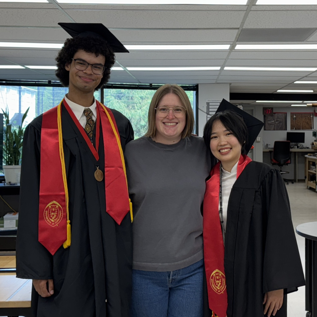 On Friday I was tickled when Linh, who is leaving UC for grad school in Illinois to pursue a future as a therapist, reached out to me asking to come down to the Lab for a picture. I immediately let Kristopher know, suspecting that he might want to join in. Kristopher will be continuing on with us in the Lab, continuing his education at UC’s law school.