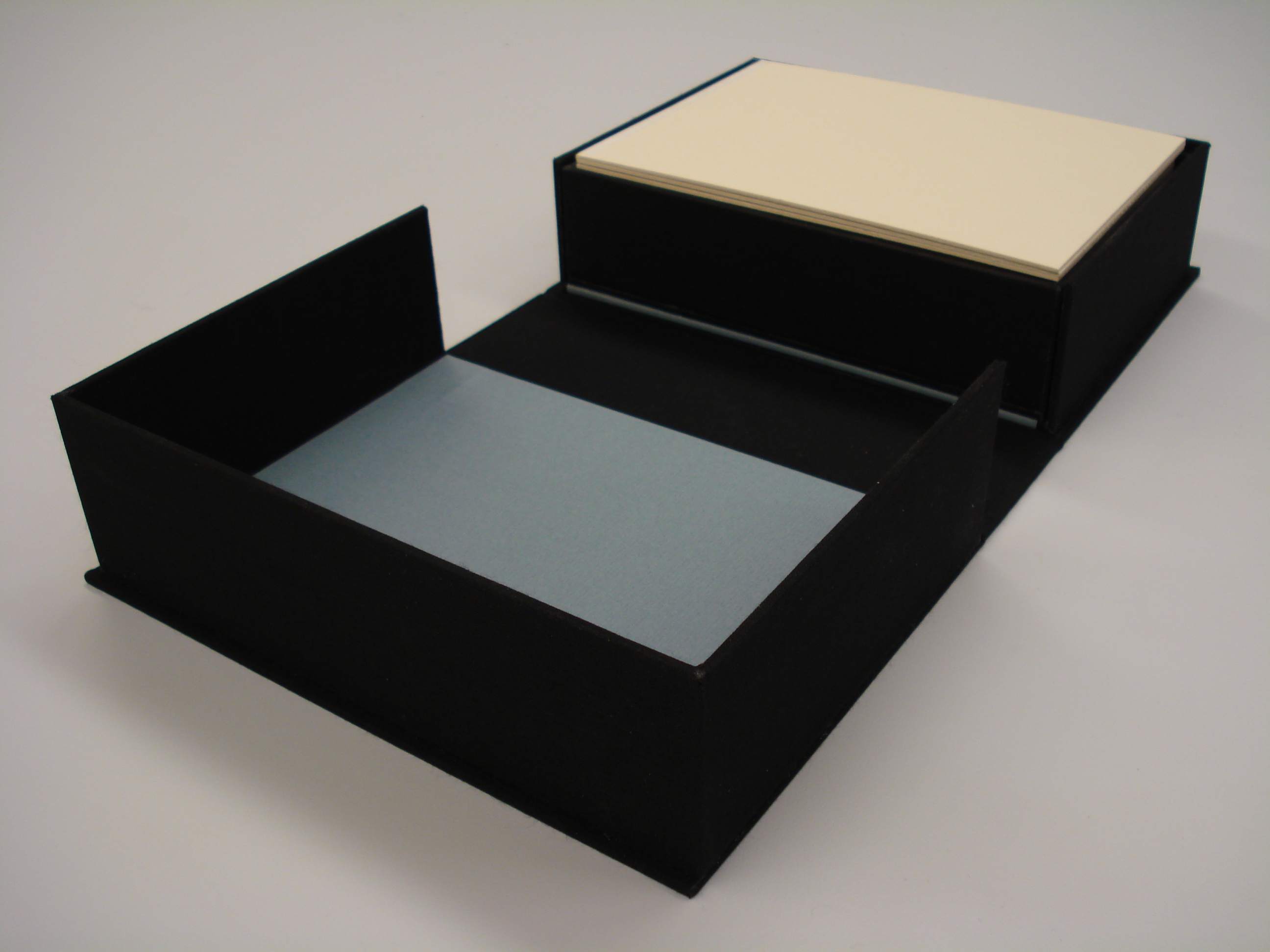All of the materials fit neatly into a cloth-covered clamshell box allowing for easy shelf storage and transportation.