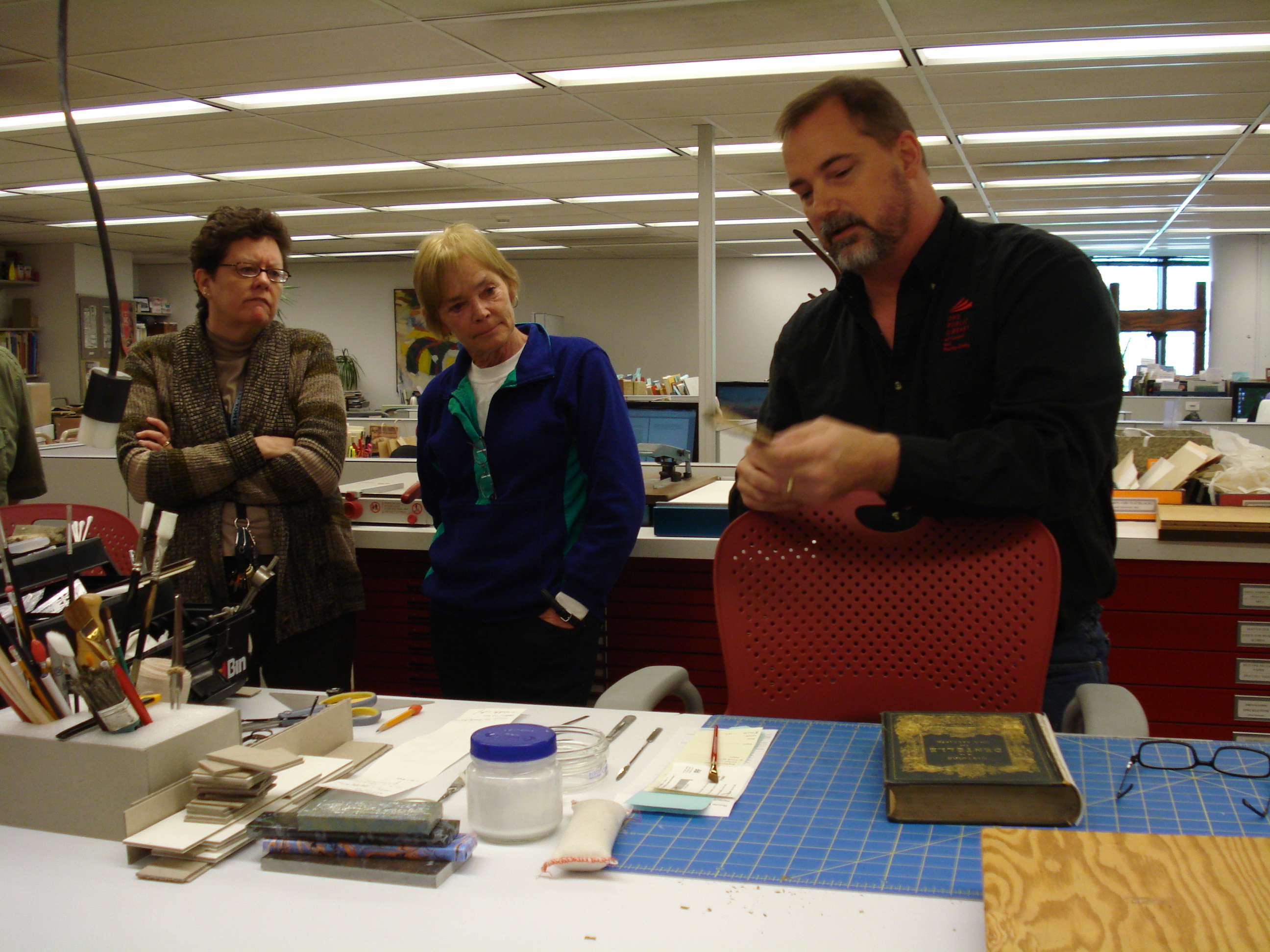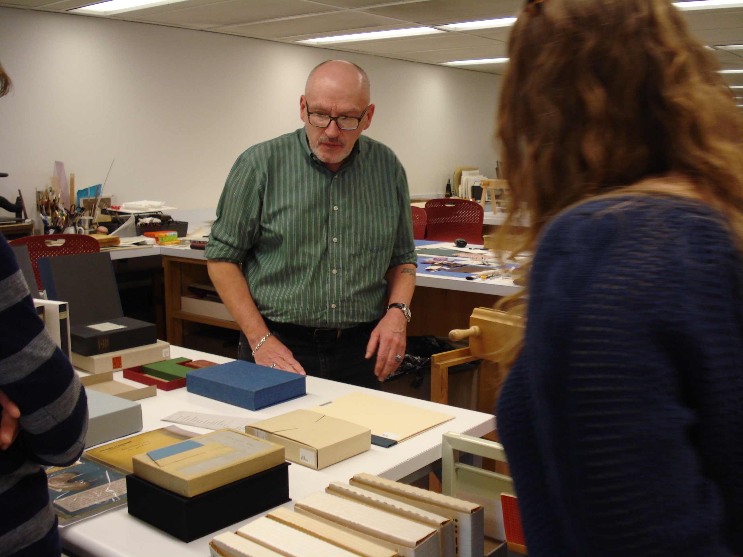 In all, over 60 people came down to visit and learn about our work. All sorts of great subjects came up, from the binding on children’s pop-up books to the logistics of building a clamshell box for an artists’ book. It was wonderful to see the conversation between members of both institutions.