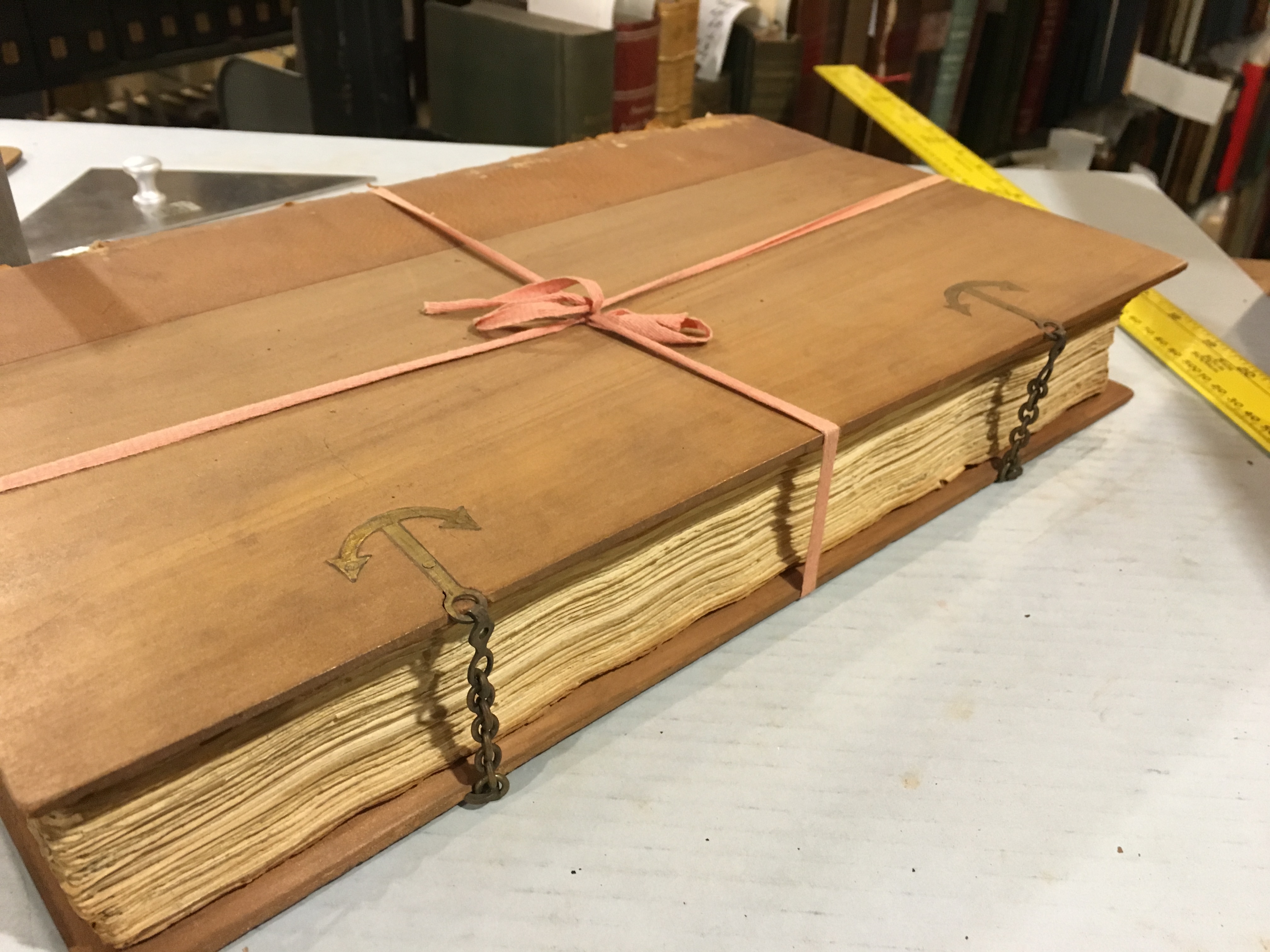 At this point we are about half way through the process. We’ve measured over 750 books for enclosures! We enlisted one of our trusty student assistants to record all the data so that we could send it off to the commercial binder. The first batch of 150 boxes arrived and were matched up with the books earlier this week. And luckily, our error rate was actually very low, even with that first batch where we were still figuring out the kinks of measuring in confined spaces and often dim lighting!