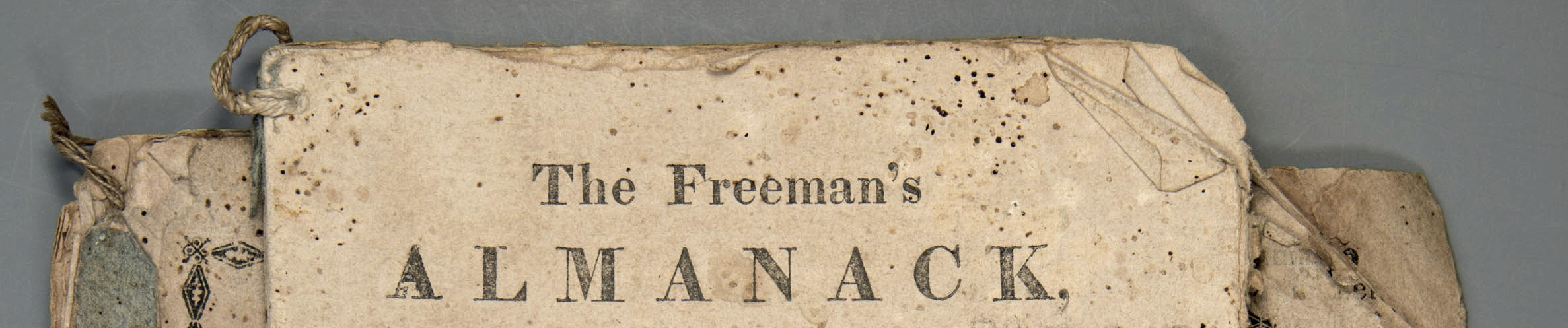 Well, the booklets are all copies of “Freeman’s Almanack”. Before the days of smart phone calendars and weather apps, before the days of catching the weather on the radio or TV, people had almanacs. In fact some people still use them today, though these days their scope has expanded and some of them can be many hundreds of pages, depending on the information they contain. Back in the 1800s they usually looked like small magazines. Published yearly, they contained articles and snippets of wit and wisdom the publishers thought their target audience (often farmers) might enjoy. Most important though were the tables, usually organized to represent a calendar month, giving times for sunrise and sunset, astronomical highlights such as eclipses, church festivals, planting dates, and what kind of weather to expect.