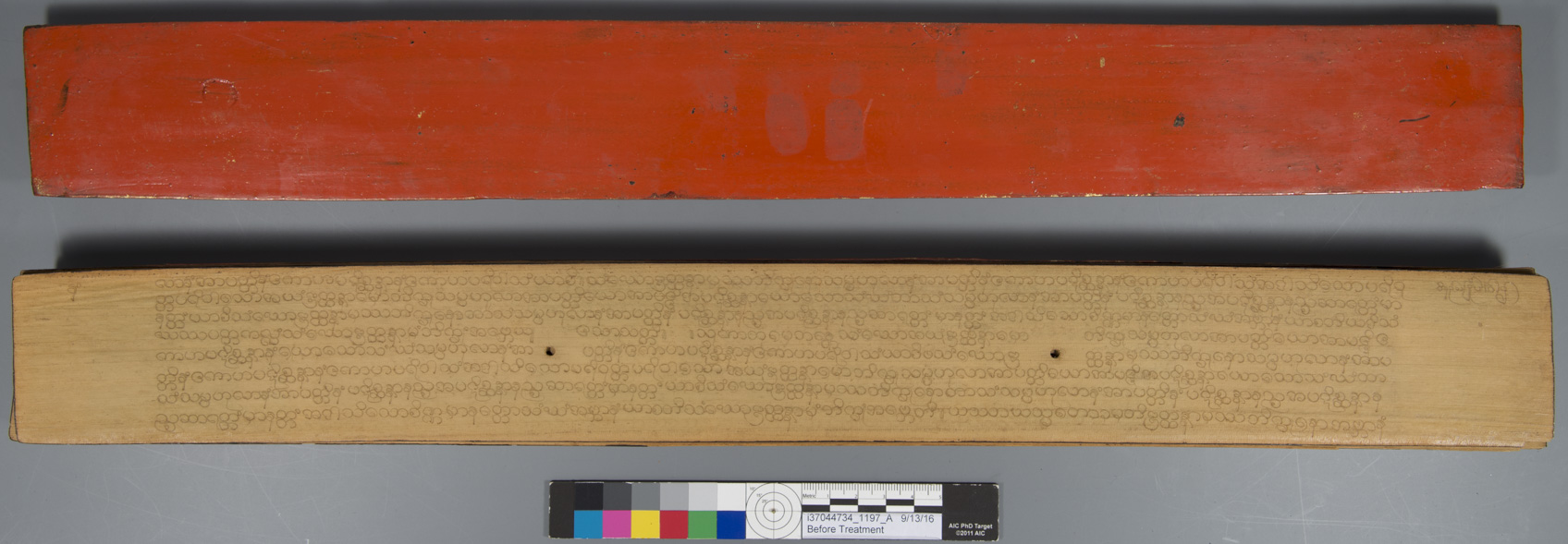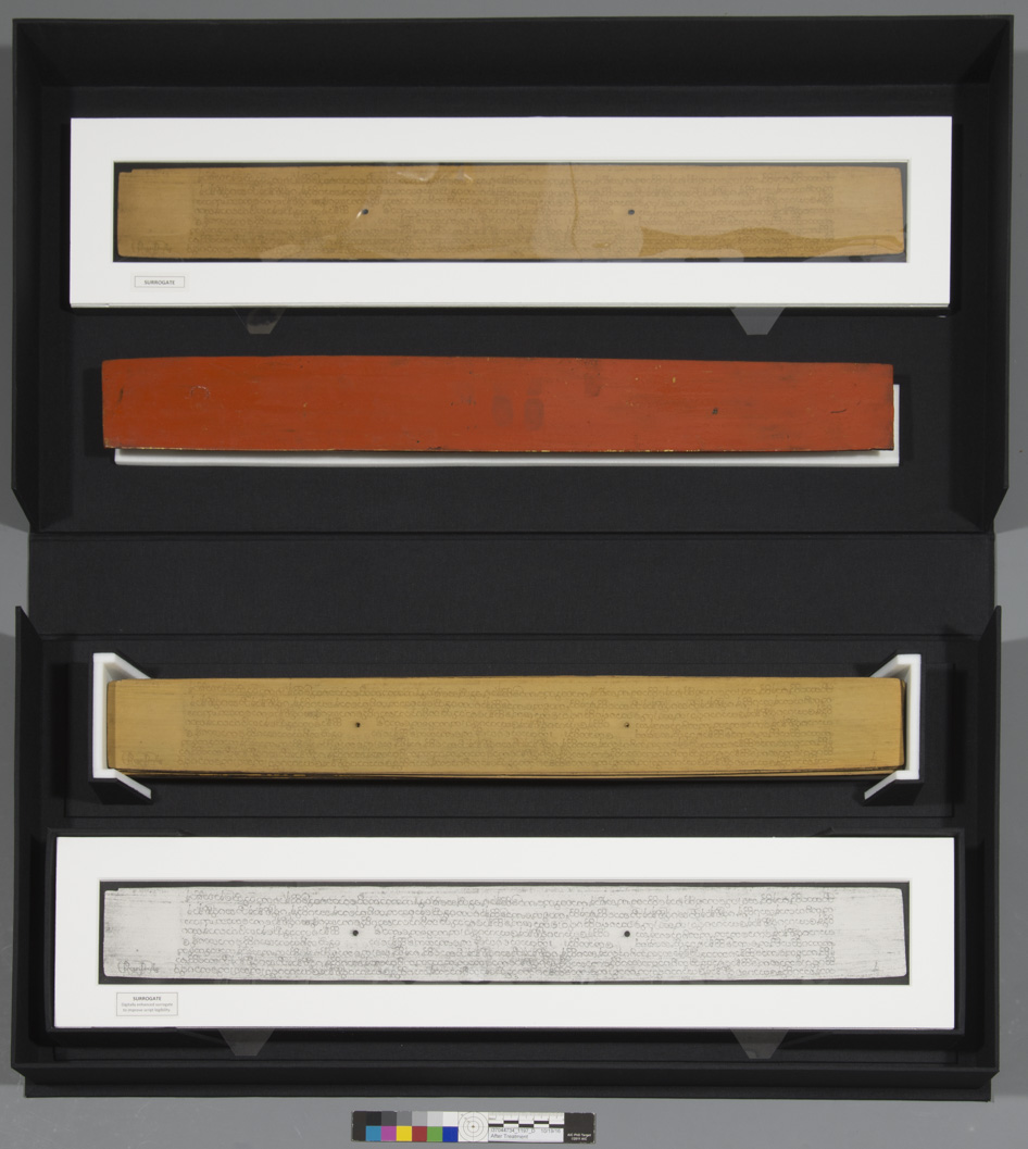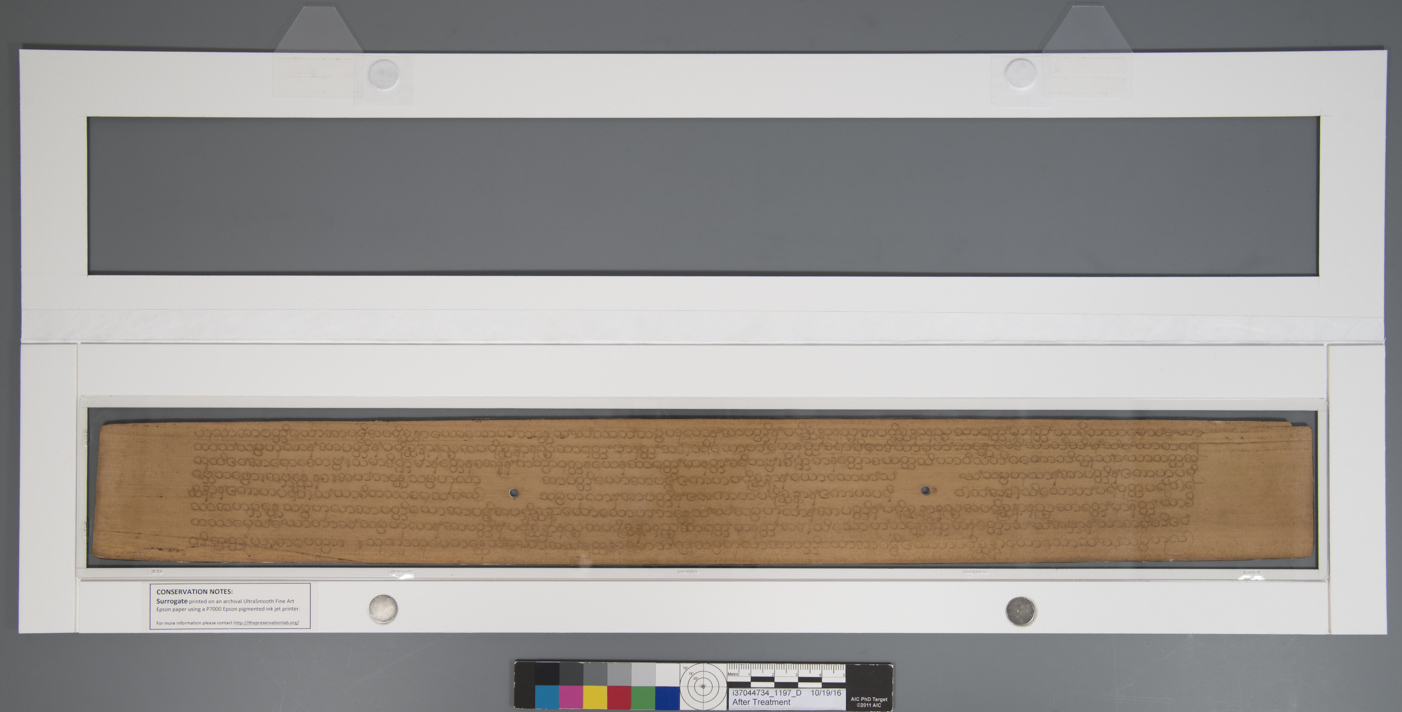Our goal was to create two surrogates; one in color, true to the original Palm leaf page; and