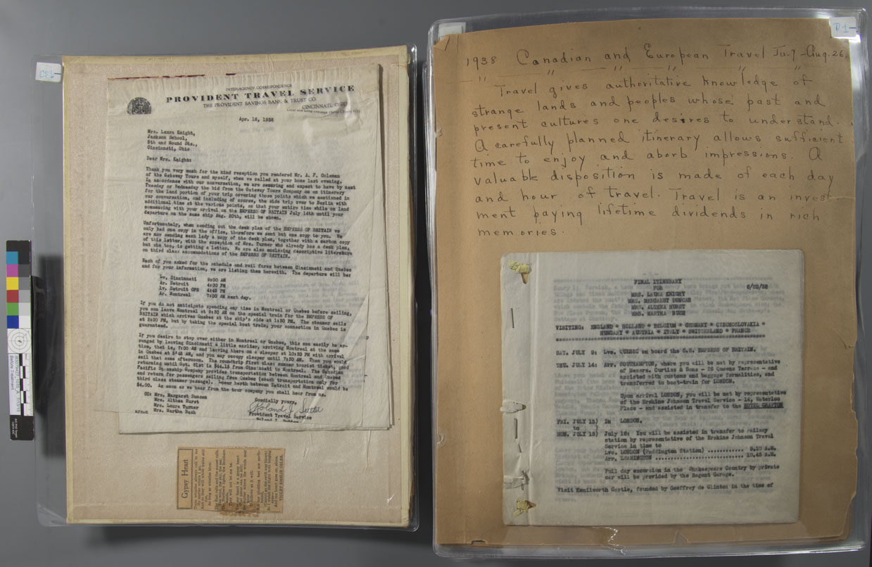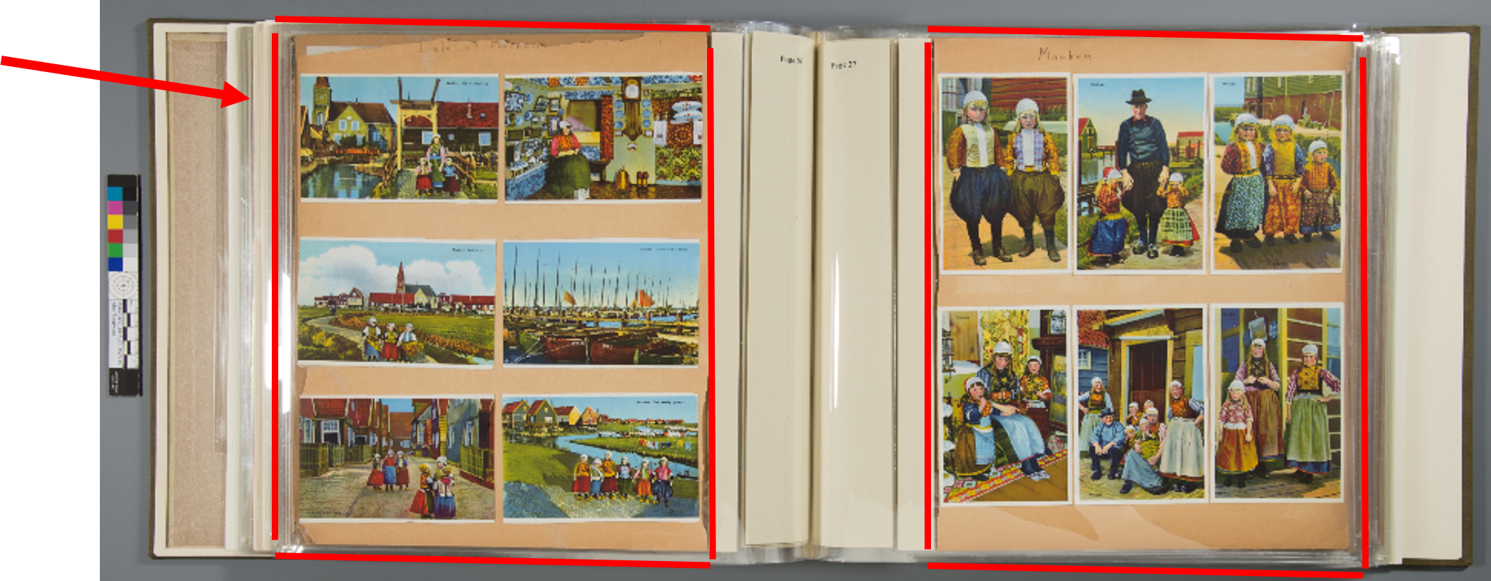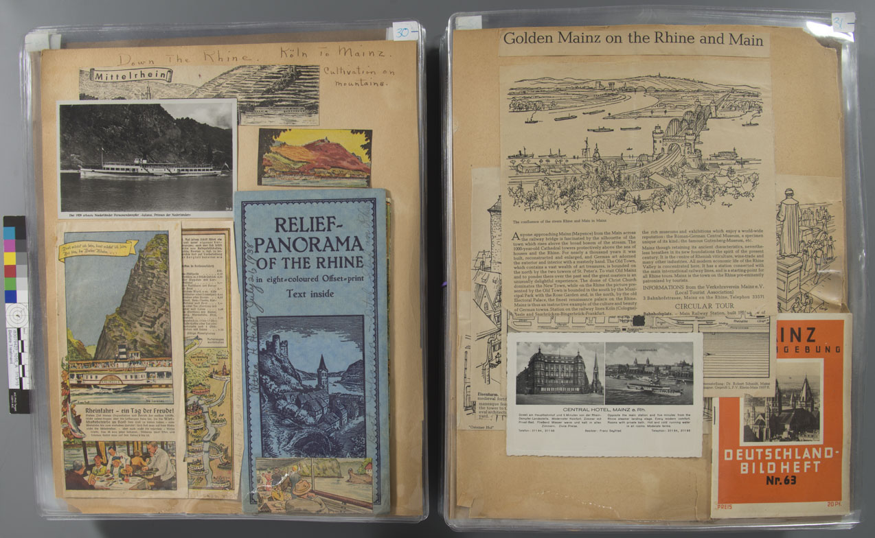 Due to their collection of content, scrapbooks usually are bursting with problematic preservation issues. Often, fragile pages hold stiff, brittle, or heavy parts that are adhered and folded. Components are frequently found layered and overlapping. These parts are filled with information and are intended to be handled and experienced; however, as the parts become fragile with age they are nearly impossible to touch without causing damage.