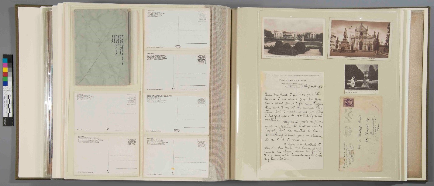 Scrapbooks are complex library materials. They are conduits to stories told through the use of collections of ephemeral materials (a.k.a. materials meant to be thrown away and not meant to last), such as newspaper clippings, letters and postcards, and maps.