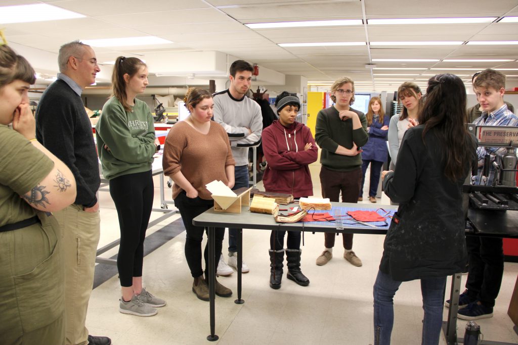 This Spring the Preservation Lab is partnering with the English Department to co-teach Book Arts (ENG3097). The Lab is leading the hands-on experiential learning portion of the course, with Gary Weissman (Associate Professor and Director of Literary & Cultural Studies, Department of English) leading the seminar portion.