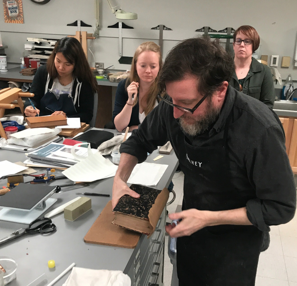 Earlier this March I was able to attend The Conservation of Leather Bookbindings at the University of Notre Dame. The American Institute for Conservation (AIC) and the Foundation for Advancement in Conservation (FAIC) supported this 5-day workshop that was taught by book conservator and tool-maker Jeff Peachey. Conservation is a field that requires a constant love of learning new skills and techniques, so when I saw this workshop was hosted not too far from Cincinnati, I jumped at the opportunity to increase my knowledge on the conservation of leather bookbindings.