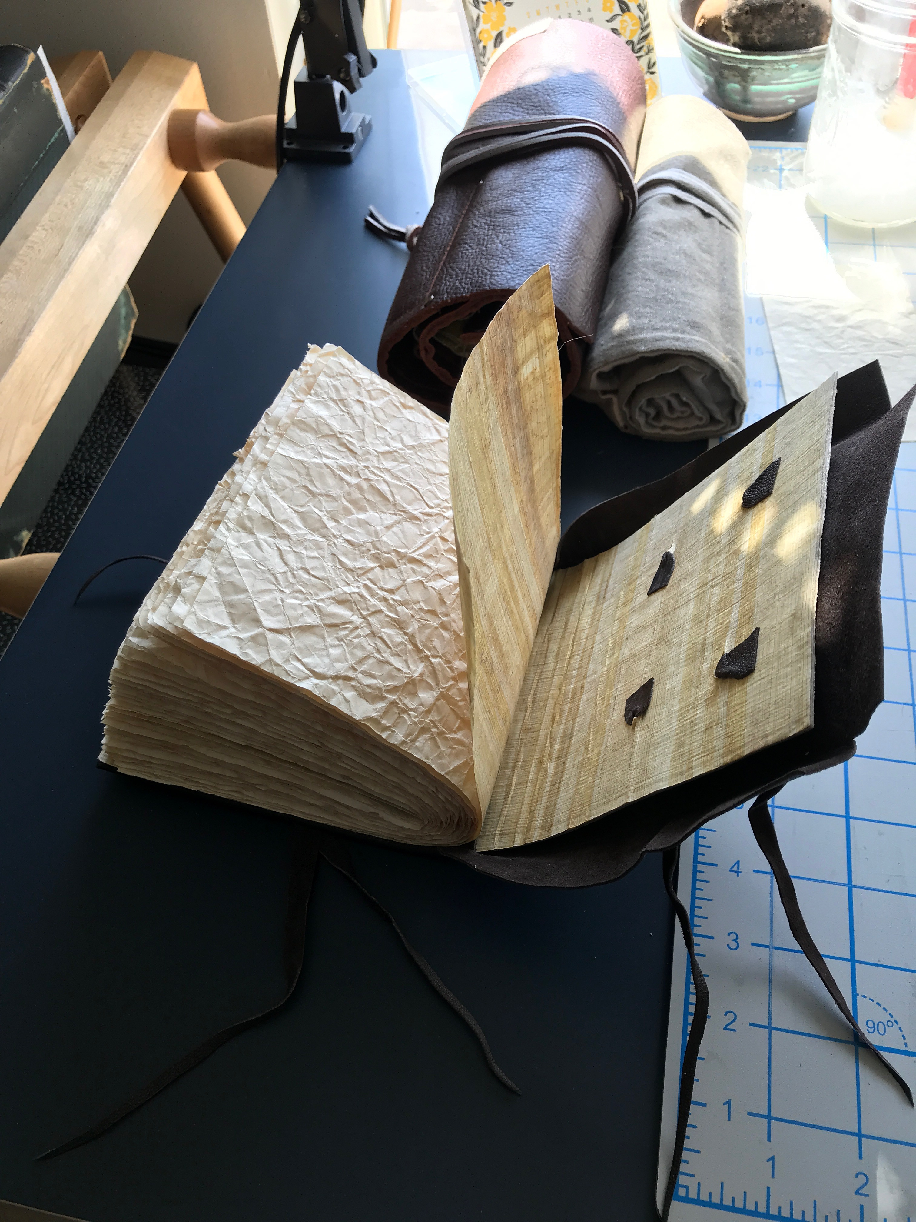 Kasie’s model – like several of us, Kasie created a cutaway model, not fully pasting down one side of the leather and turn-ins and not attaching the pastedown