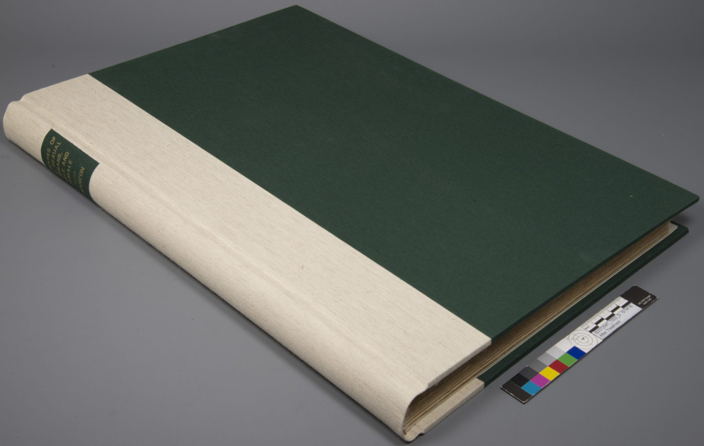 After Treatment – Conservation treatment complete. After the text block was repaired and resewn, the book received a new split board binding that allowed the heavy book to be read while mitigating further damage.