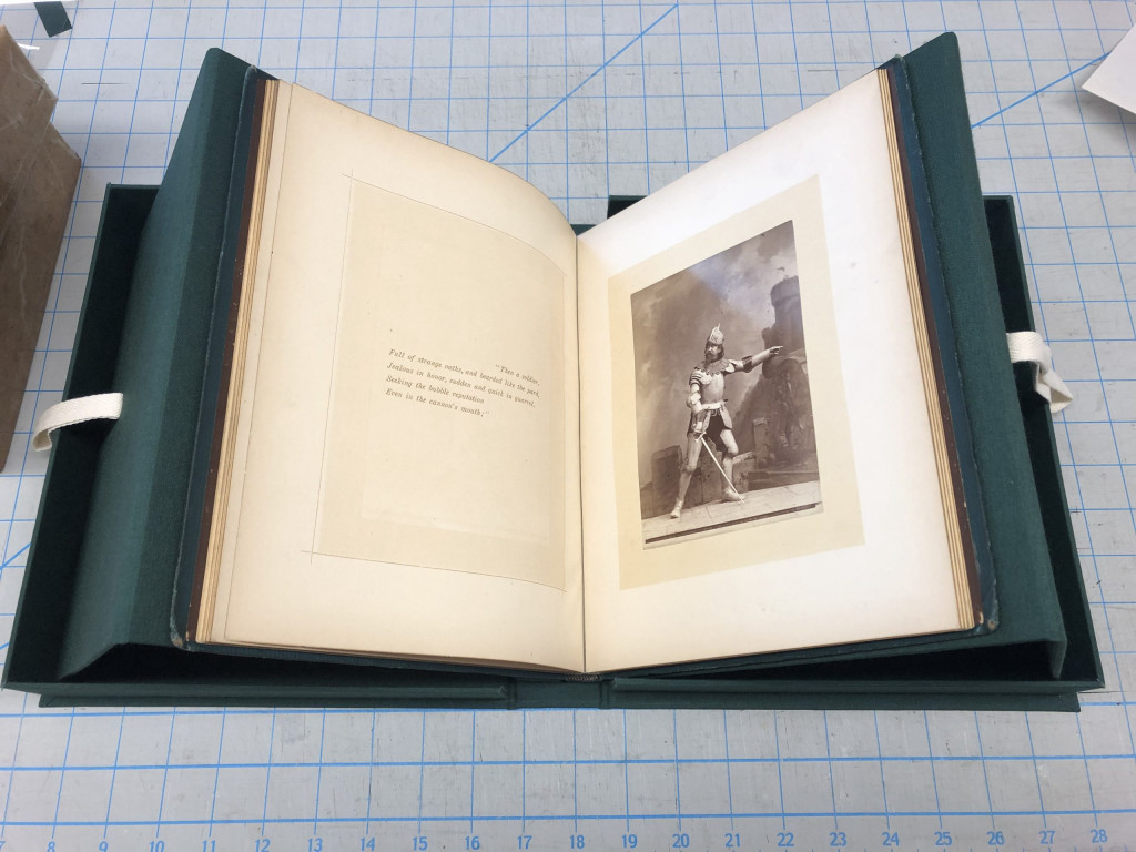 Not only was this piece based on a favorite subject of mine (I love Shakespeare!), this was a historic photograph treatment I was able to handle with just a little guidance. I was able to properly identify the photographic elements on the first try, performed a surface cleaning on the piece, and created my very first cloth-covered clamshell and cradle to house it. It was such a wealth of learning experiences within one project, which is the best part of my work!
