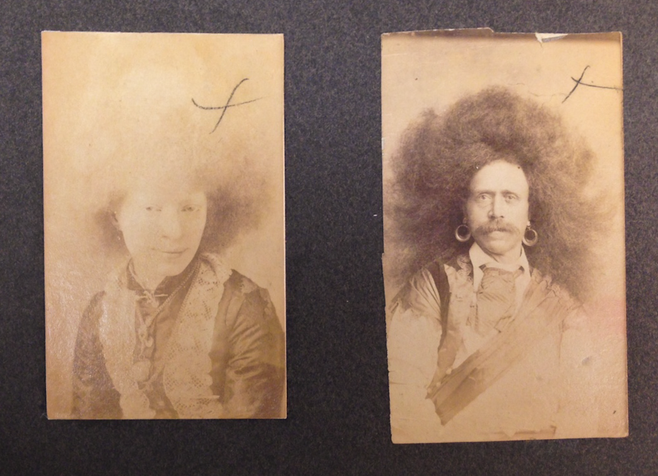 A rare photographic album owned by the Cincinnati and Hamilton County Public Library (CHPL) dates to the late 19th to early 20th century and contains albumen portraits of John Robinson’s circus performers. The images have been fully digitized after receiving treatment to improve legibility at the Preservation Lab. The CHPL Digital Library catalog describes the object as follows: