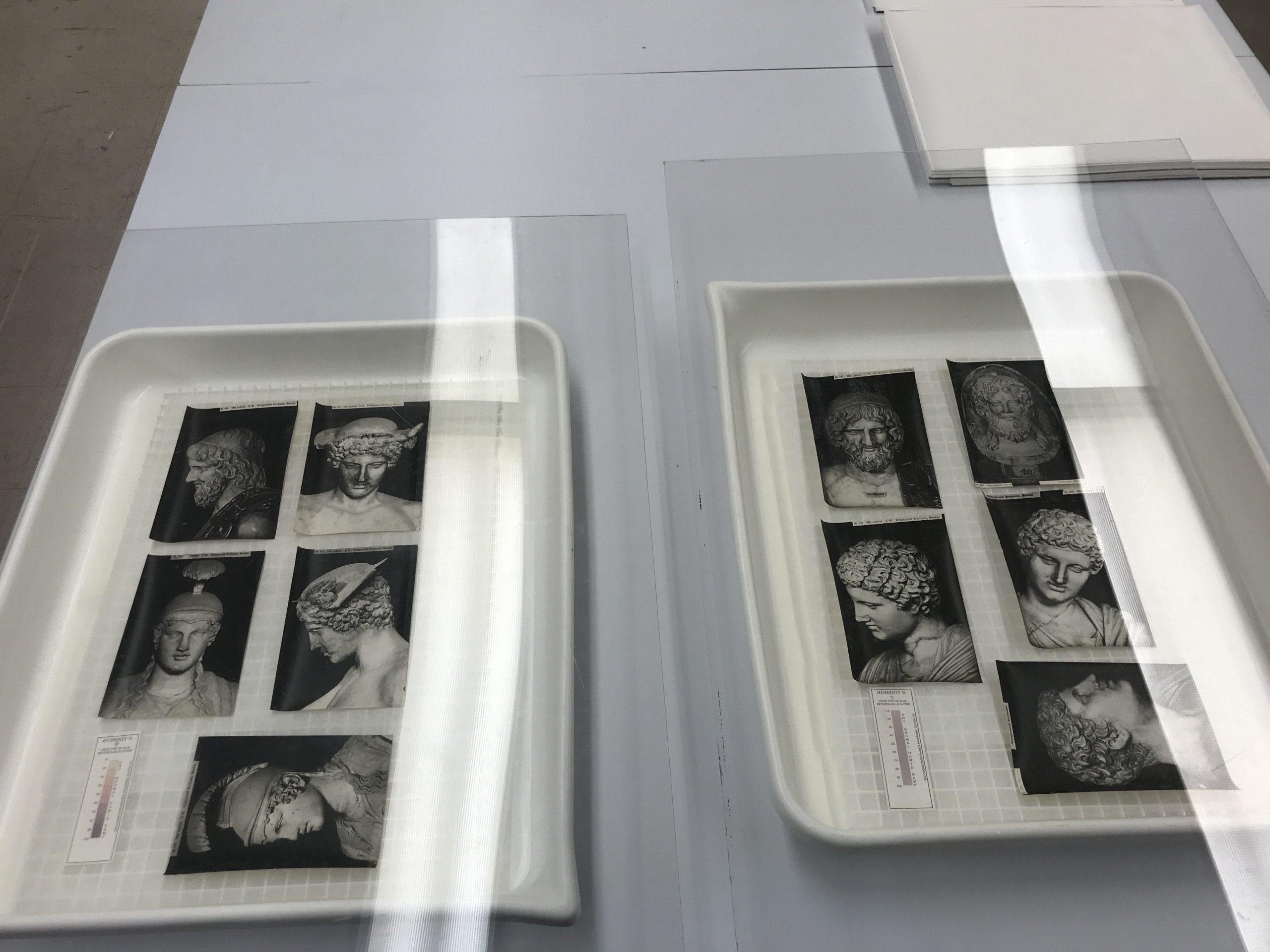 During Treatment – Small batch of Photographs being humidified in a cold humidity chamber.