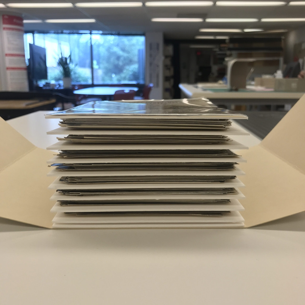 I am still working on my batch. I currently have one-fifth of the photographs being pressed and the rest are awaiting humidification and flattening. This is a long project that requires constant monitoring and time for pressing, but it is so satisfying to see the photographs slowly relaxing and flattening. It will probably take us a few years or more to fully complete the entire 16 series, but once the project is complete each series will be safely housed and repair.