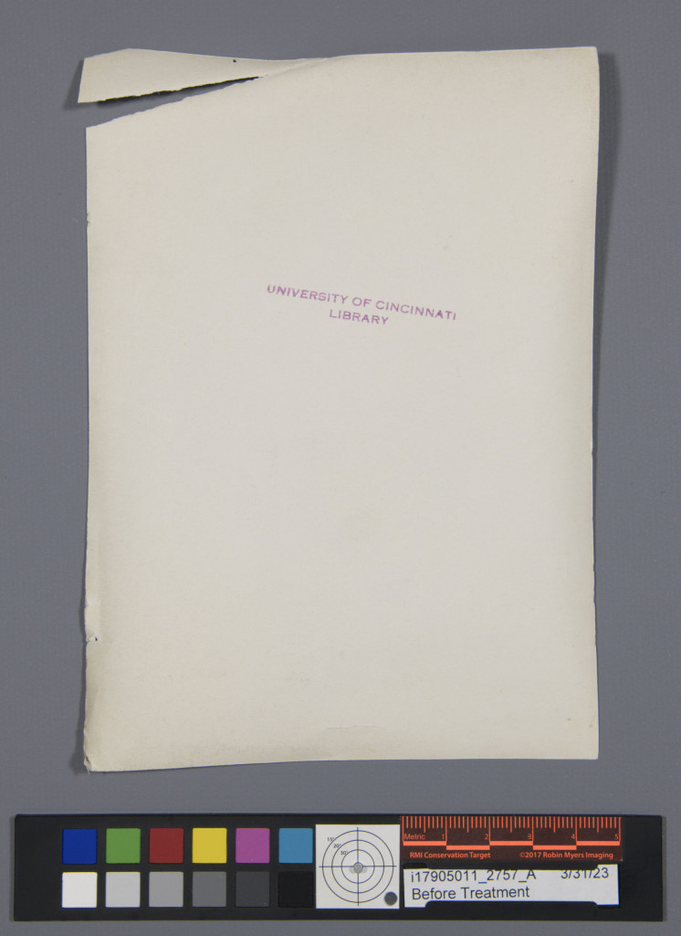 Before Treatment – Photographs as they were received in the Preservation Lab. Overall, curled with small tears along the edges.