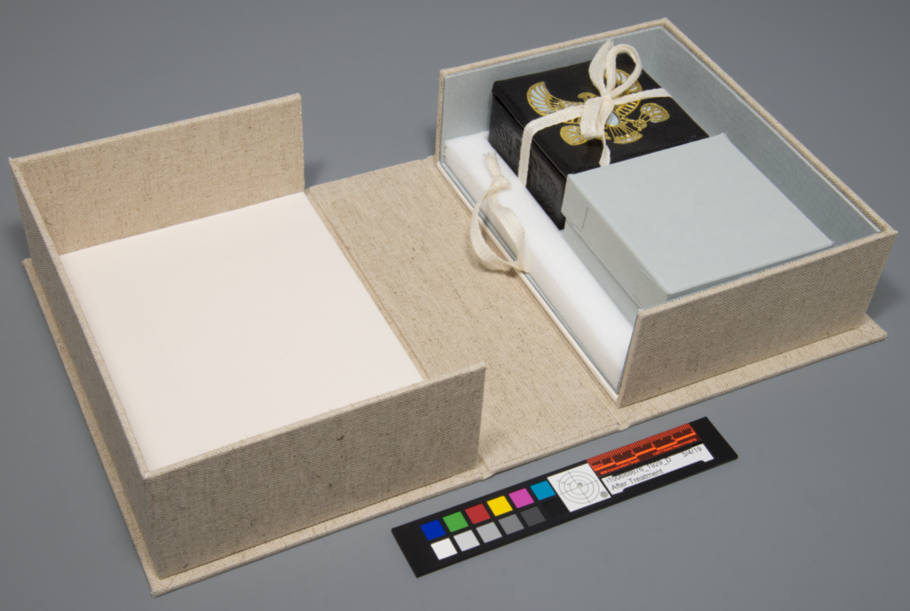 While he brought many skills with him, such as an ability to cut oversized mats, solder and work with metal files, his treatment skills have grown from general collections conservation to the treatment of special collections – with interests in leather, scrapbooks, and making clasps for medieval books. Treatment aside, Chris has held the esteemed title of Box-Maker Extraordinaire.