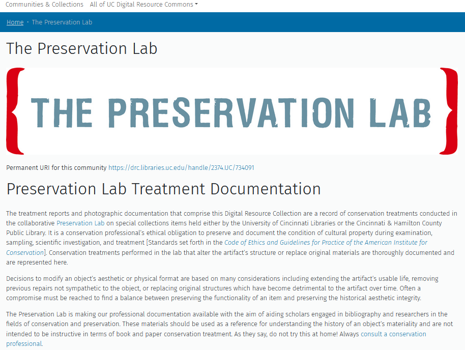 For Preservation Week 2024, Duke University Libraries will host a virtual panel discussion about Public Digital Collections of Conservation Treatment Documentation on Thursday May 2 at 11 am EDT. Conservation representatives from four institutions (The British Museum, The Preservation Lab (Cincinnati, Ohio), Duke University Libraries, and Stanford Libraries) will share their experiences in building and sharing their institutions’ digital collections of conservation treatment documentation. Panelists will introduce their collections and discuss topics such as digital preservation of treatment records, metadata creation, linking to catalog records and finding aids, and potential privacy and copyright issues.