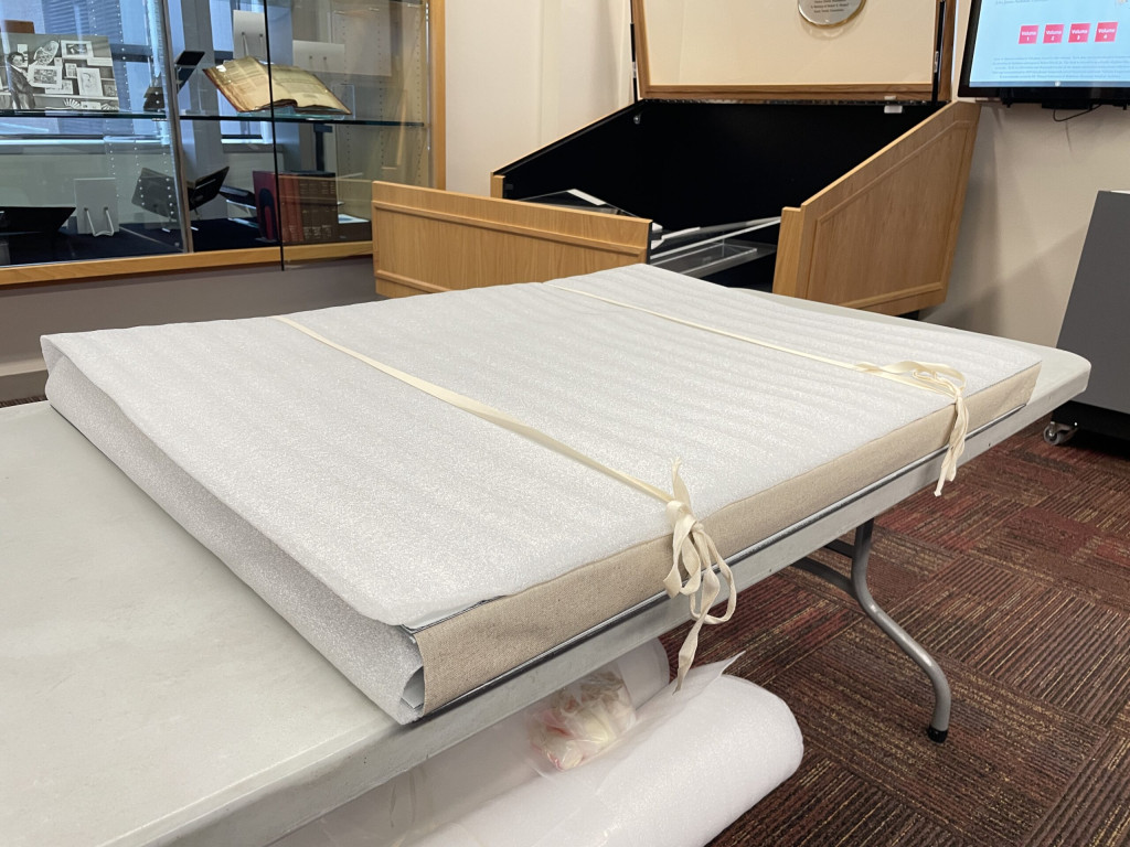 In preparation for reopening, the Preservation Lab has been working closely with a variety of CHPL staff to prepare collection items and exhibit cases for display.