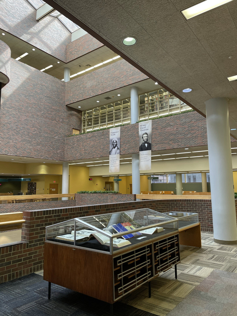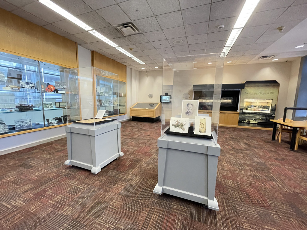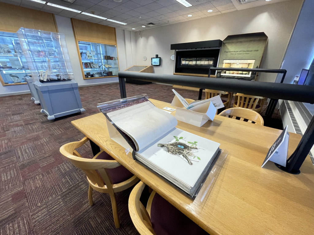 The physical exhibit is located on the 3rd floor in the Cincinnati Room along the connector where special collections are carefully monitored while on display with specialized light, humidity and temperature controls.