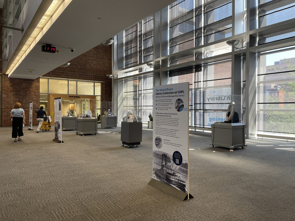 This exhibit utilizes the Inland Rivers Collection at CHPL to illustrate the historic steamboat and river culture in the region. It is located on the 2nd floor connector.