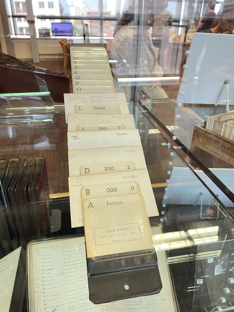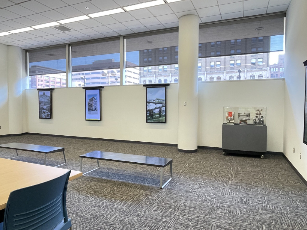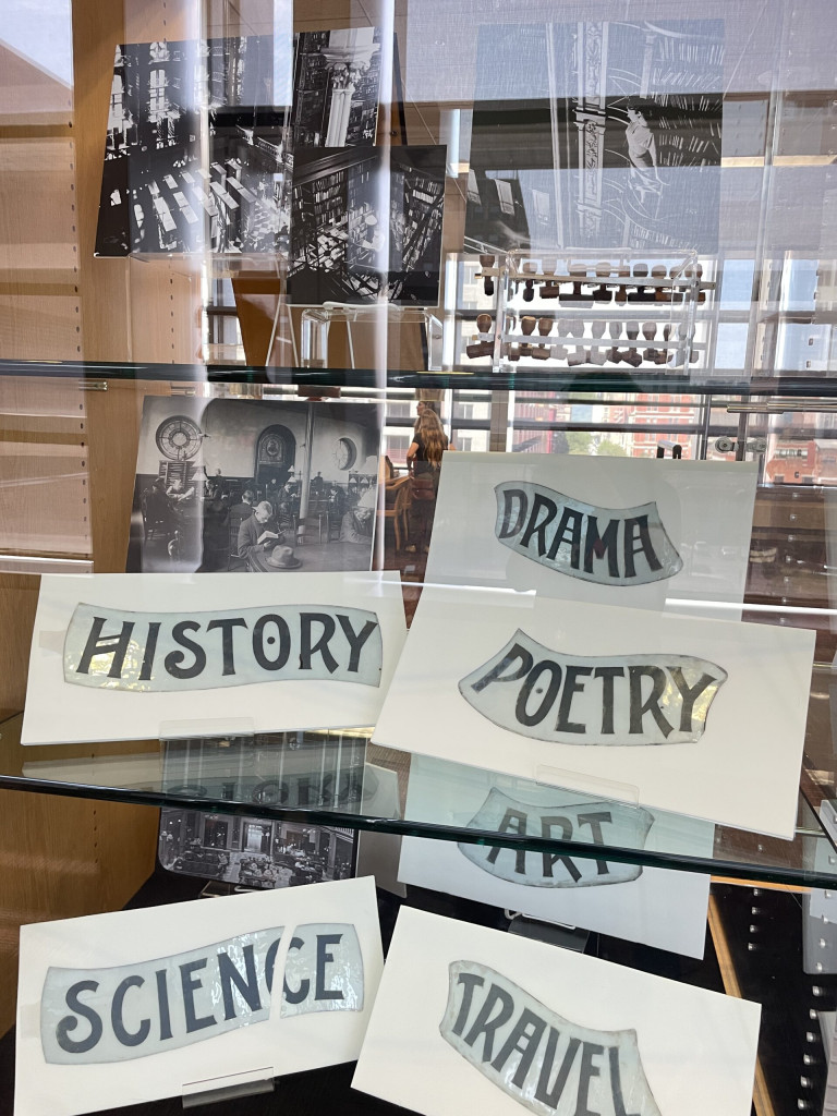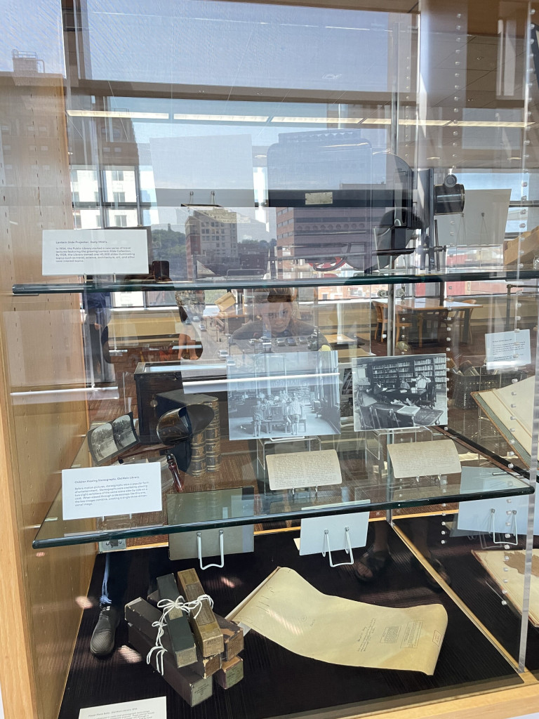 On view are captivating images of the iconic lost library of Vine Street as well as other branch locations, many of which are Carnegie buildings. You can also get up close and personal with past library technologies and special collection objects such as stained glass from the original Vine Street location.