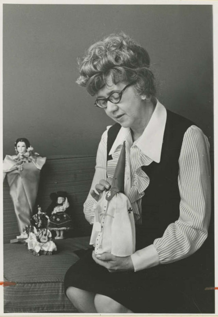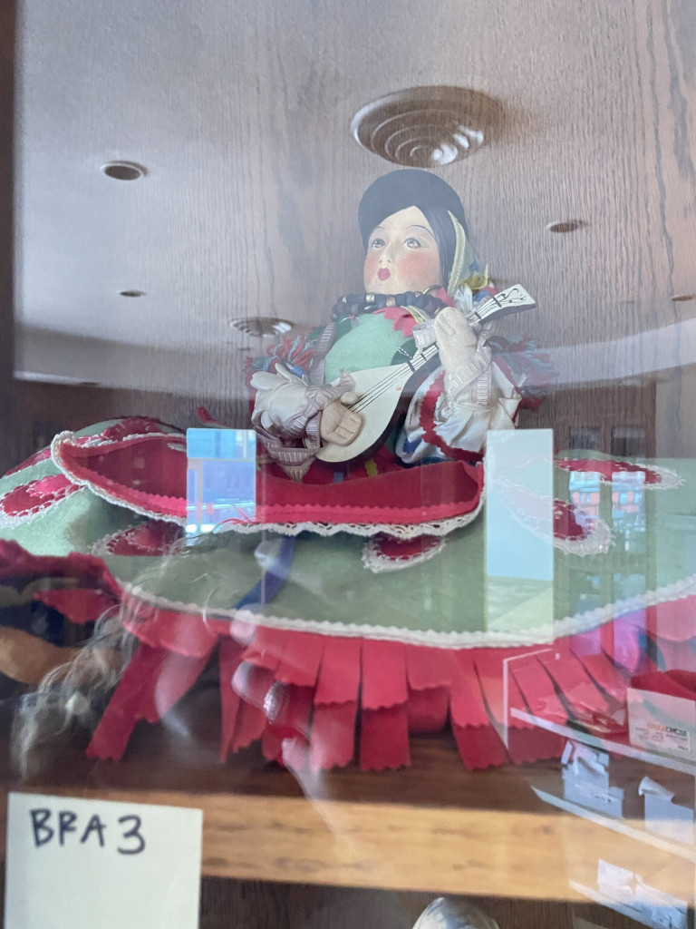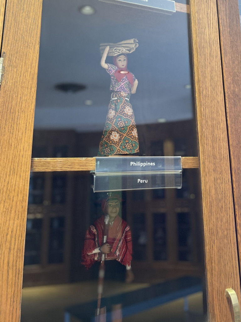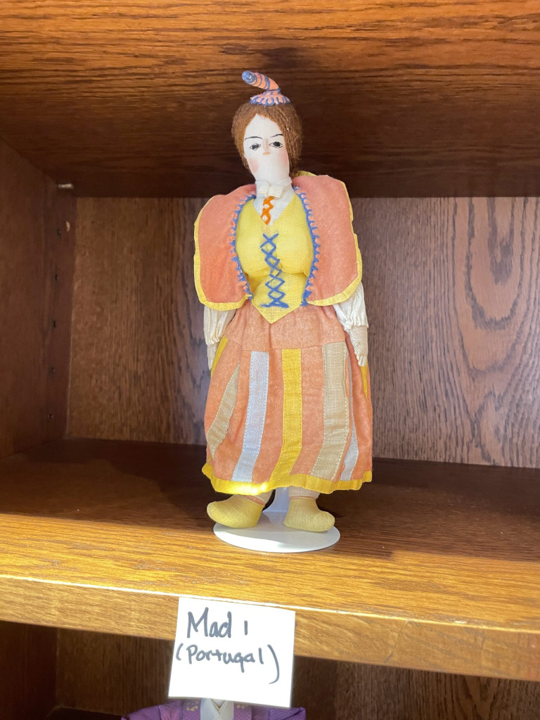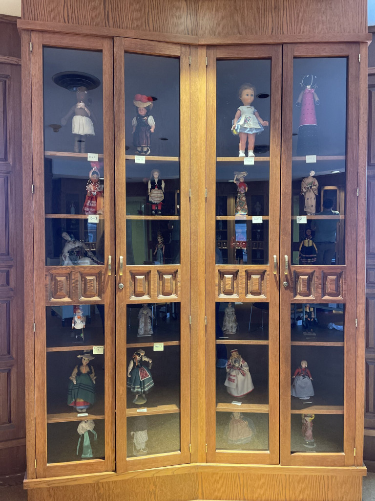 Located in the Nolan Room (namesake of John T. Nolan Jr, president of the board of trustees from 1951-1983, known as “Jack”), are a collection of dolls from all over the world, representing nearly 100 countries. The dolls were gifted to the Library by Eugenia Rhein who was an administration assistant and a deeply committed employee for over 40 years. During Eugenia’s extensive travels she collected the dolls from countries such as Kuwait, Algeria, Rhodesia, Korea, Pakistan, Whales and more. In the 1970’s the dolls were often used in displays at the library to tell stories about children from other cultures by the Children’s Librarian.
