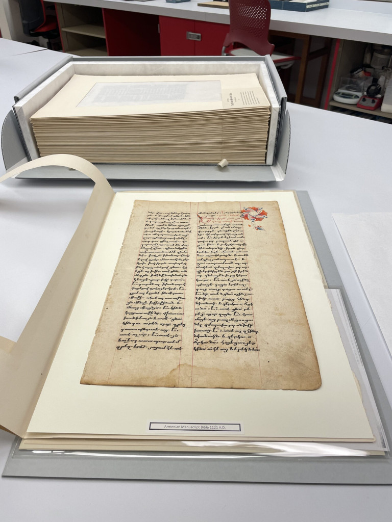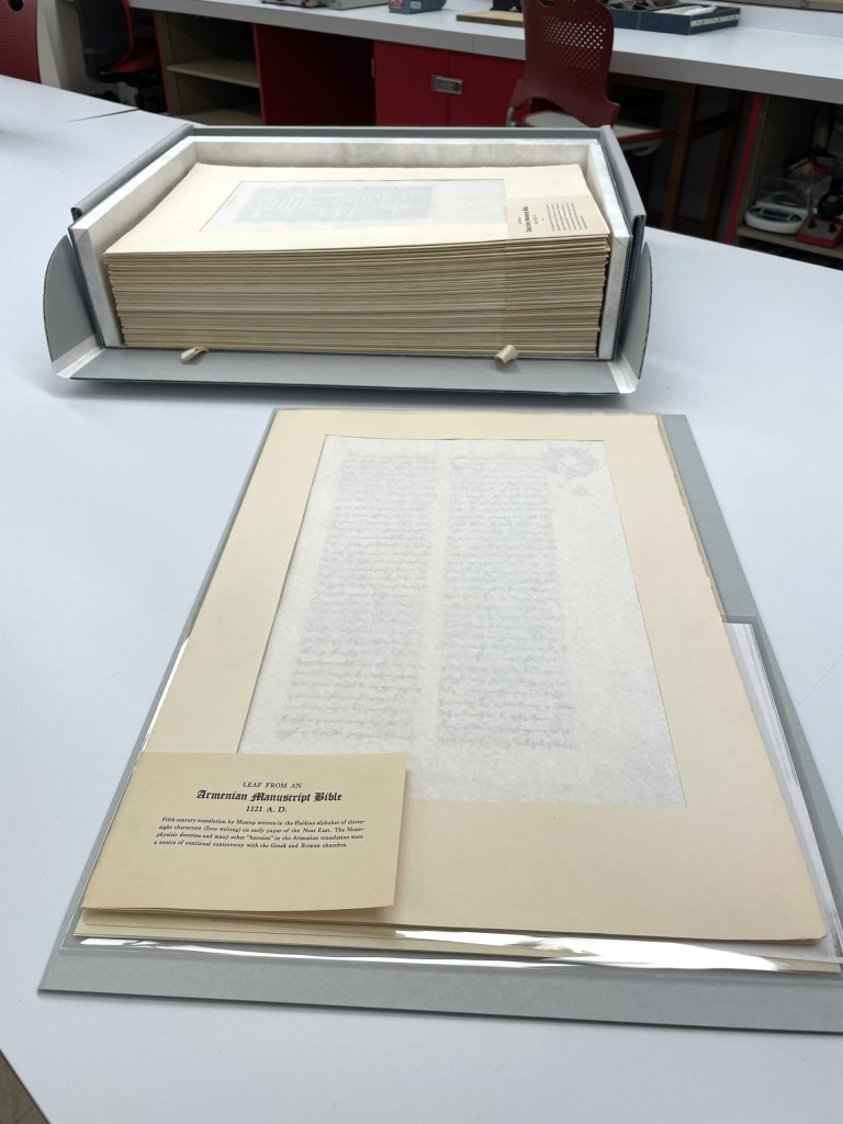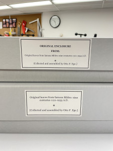 The Public Library owns four collections by Ege. Each have been receiving treatment to better improve their long-term storage. After the smaller collections received successful treatment, this larger collection followed suite.