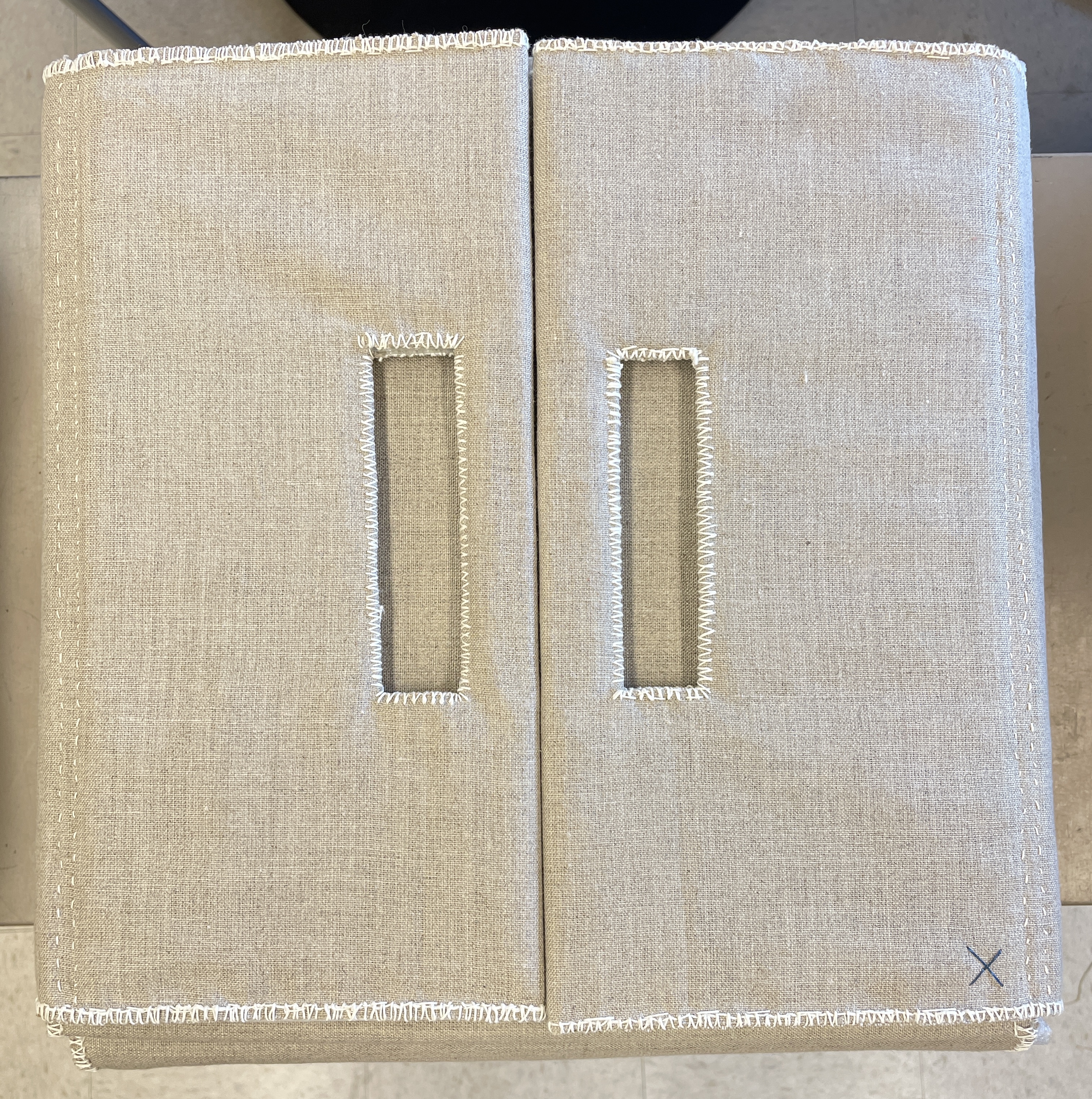 5. A cloth wrapper with custom handles was sewn to support the tablet during insertion into and retrieval from the case.