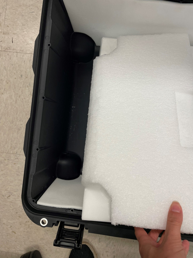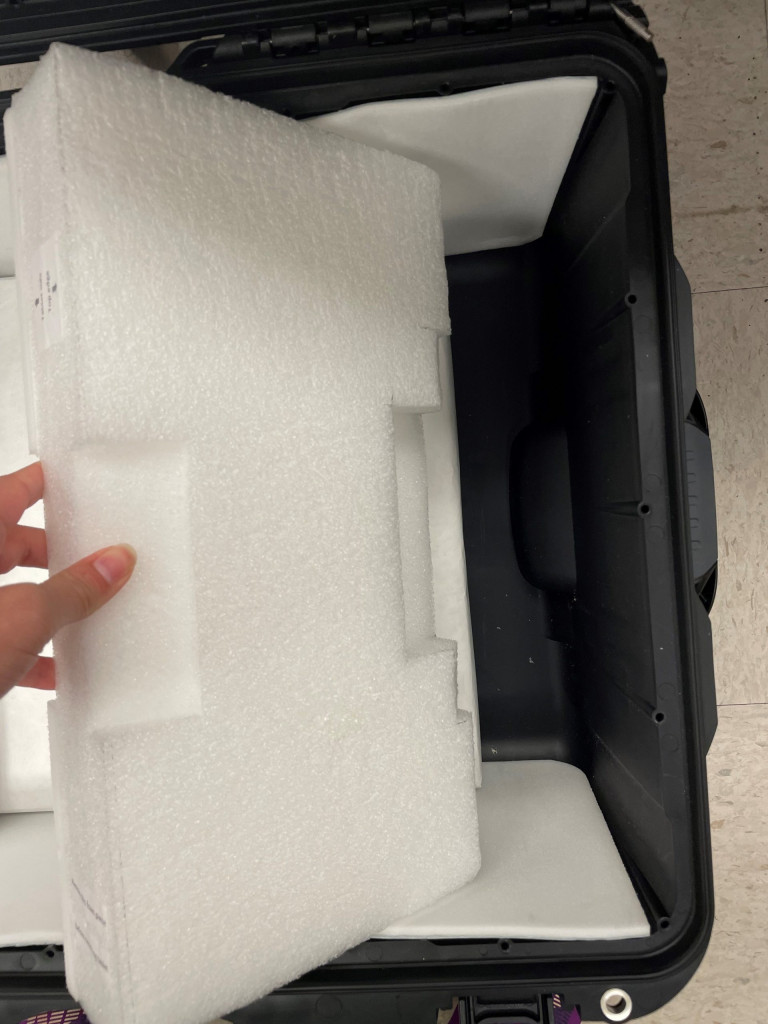 1. A waterproof, shock-proof rolling Nanuk 950 case (similar to a Pelican case) was purchased.
