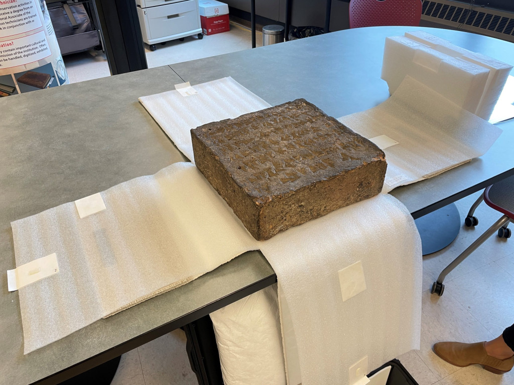 After surface cleaning and digitizing the cornerstone, finding suitable storage for an Assyrian cornerstone tablet seemed like a straightforward task in the beginning. I thought, “Let’s get it off the floor, house it, and protect it from dust!” No problem, right?