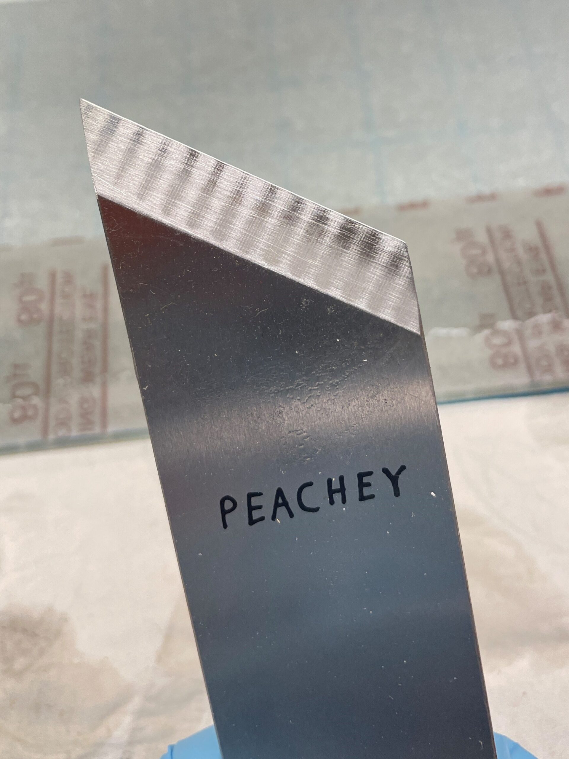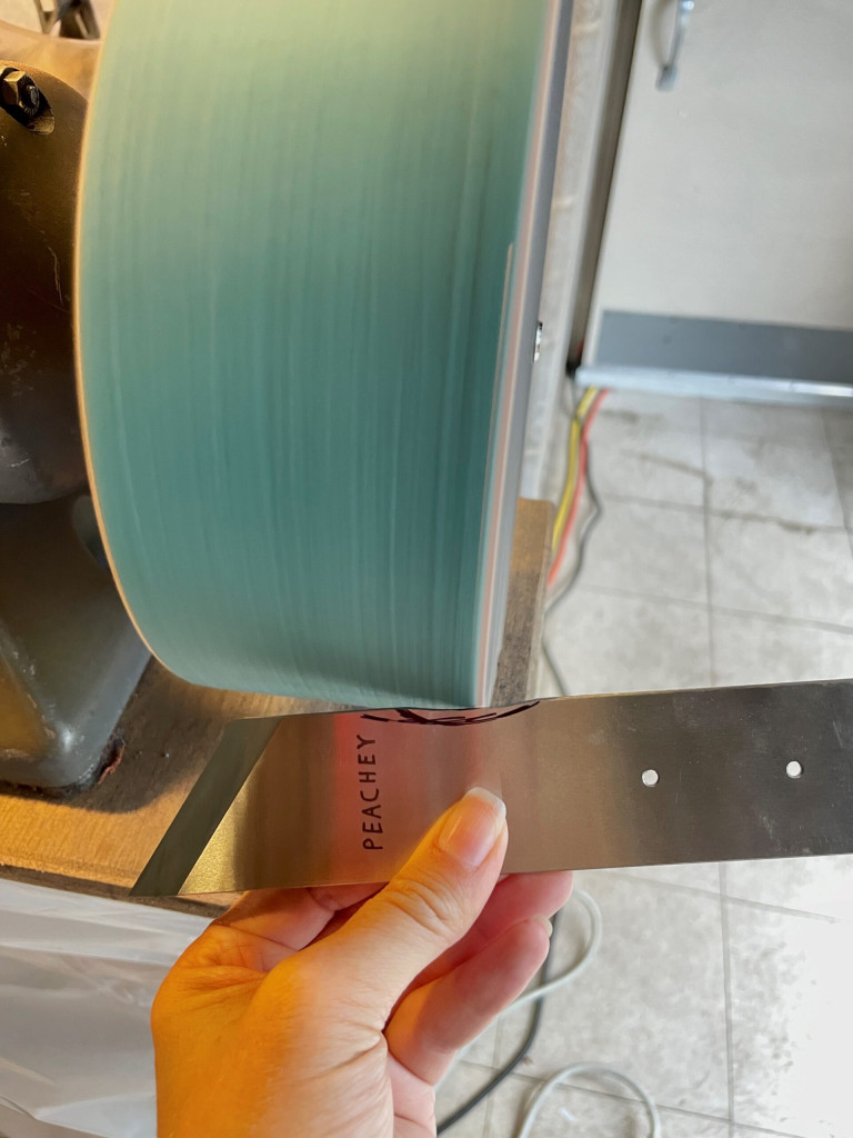 Our second and third days with Jeff were all about M2 steel knifes, both sharpening them and making them. We learned all about using Jeff’s sharpening system and honed down our own Peachey paring knife. We also made two lifting knives out of Starrett 32T hacksaw blades by grinding the blades down on a belt sander and then taking them through the sharpening system with microfinishing films to achieve a sharp edge.