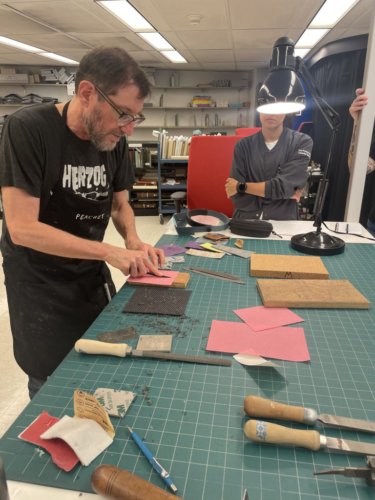 For one week in July, 2024, the Preservation Lab busted out belt sanders and opened the elbow grease to host a workshop taught by Jeff Peachey, learning all about making, modifying and maintaining our own hand tools. Jeff, a book conservator and master tool maker, brought all kinds of fun machinery and exciting tools for us to learn from and use. From hacksaws to pencil sharpeners, Jeff’s tool collection is inspiring, and we all left the week with some amazing new additions to our bench.