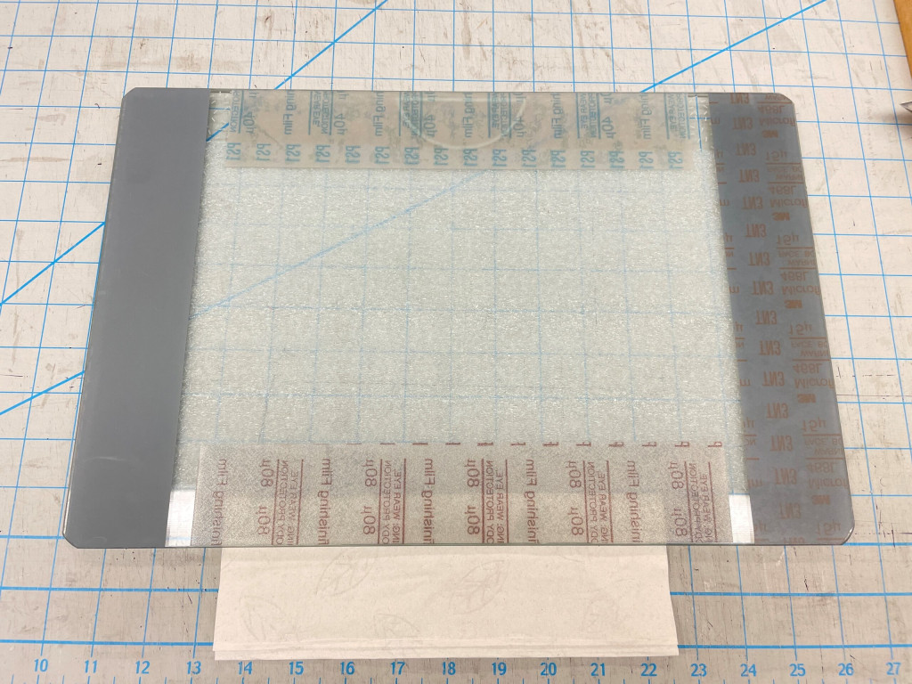 A progression of 3M Microfinishing Films adhered to a glass plate for sharpening. Credit: Ashleigh Ferguson Schieszer
