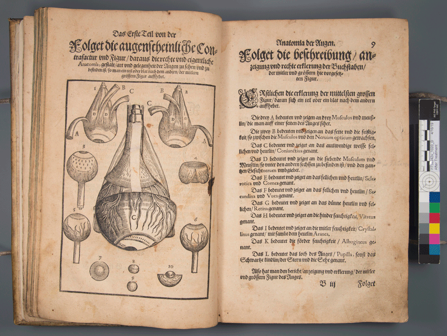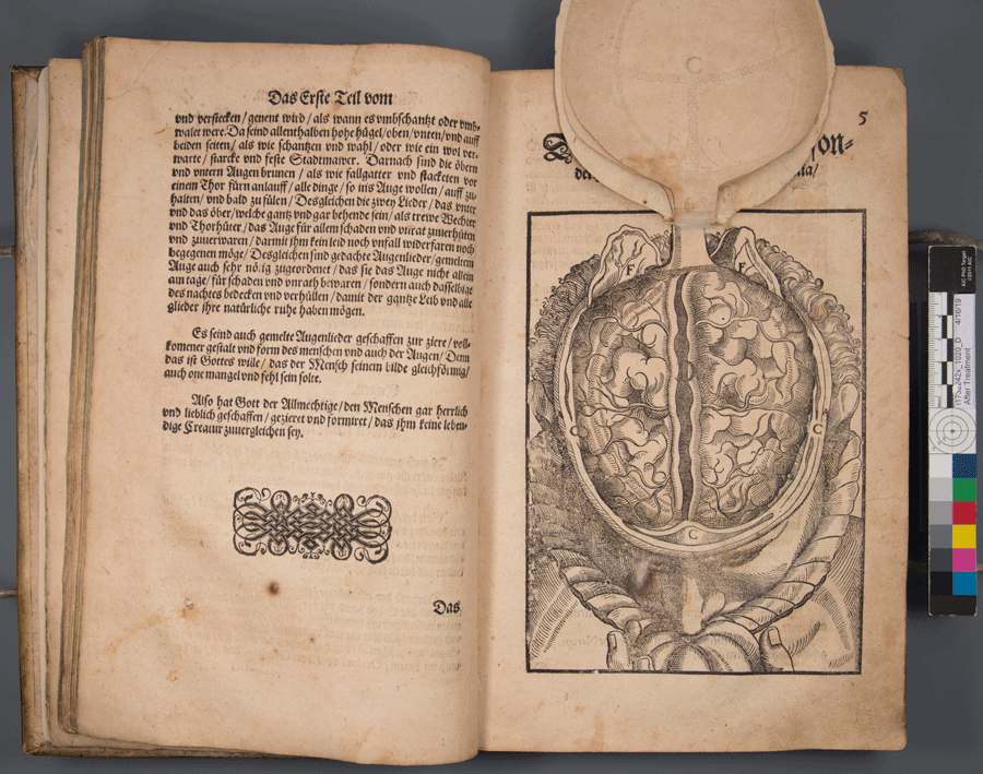 Since it’s Tuesday, but you’re probably wishing it was Friday, I thought I’d share some fun gifs of a 16th century German ophthalmolgy book from UC’s Archives & Rare Books Library that was recently treated and returned. But first, let’s take a look at the treatment carried out by our conservator, Ashleigh Schieszer.