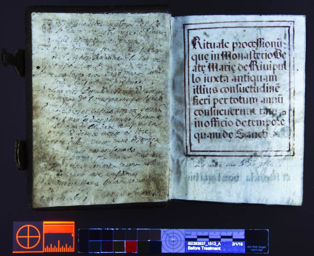 Normal illuminationUV radiation image using our current, standardized workflow that has been further enhanced to bring out the text.