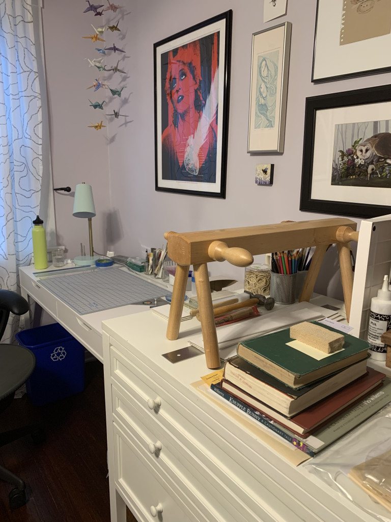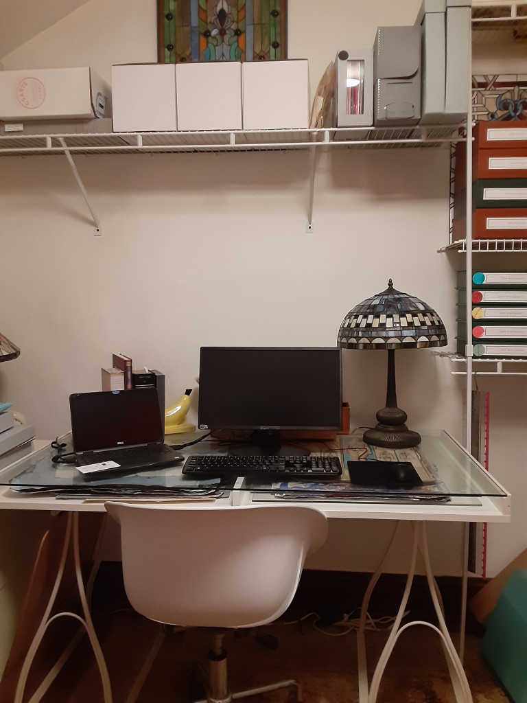 As of Monday (3/16/2020) the Preservation Lab staff are practicing safe social distancing by sheltering in place. We have packed up our benches and transformed our personal living spaces into productive places to work from home.