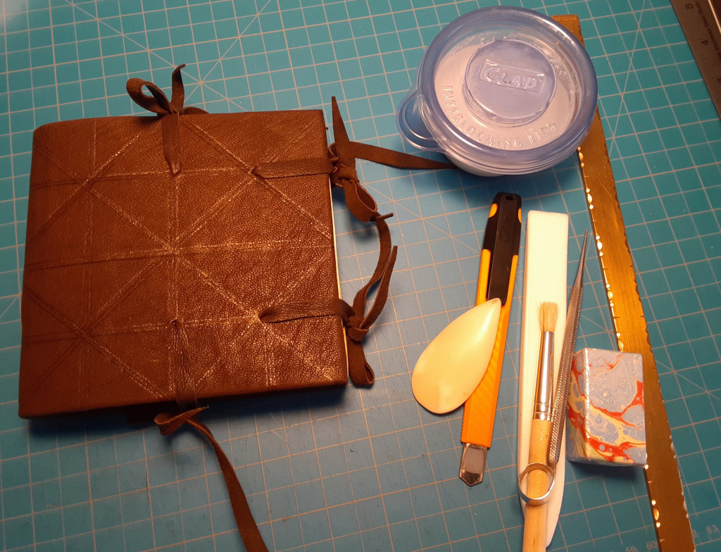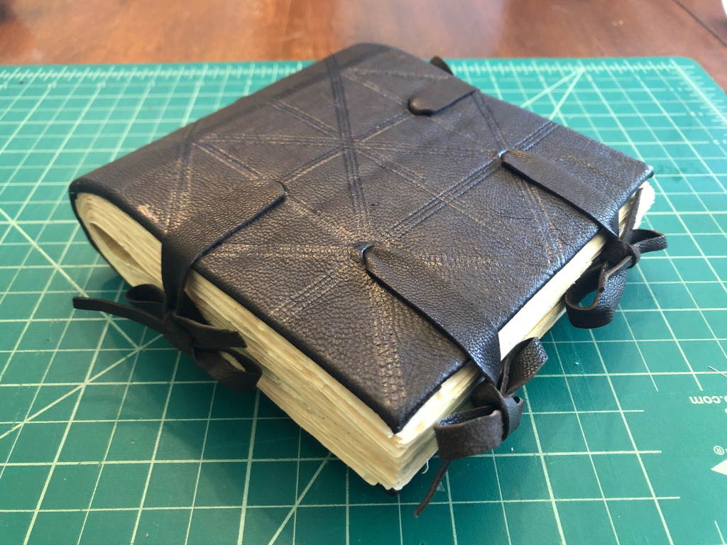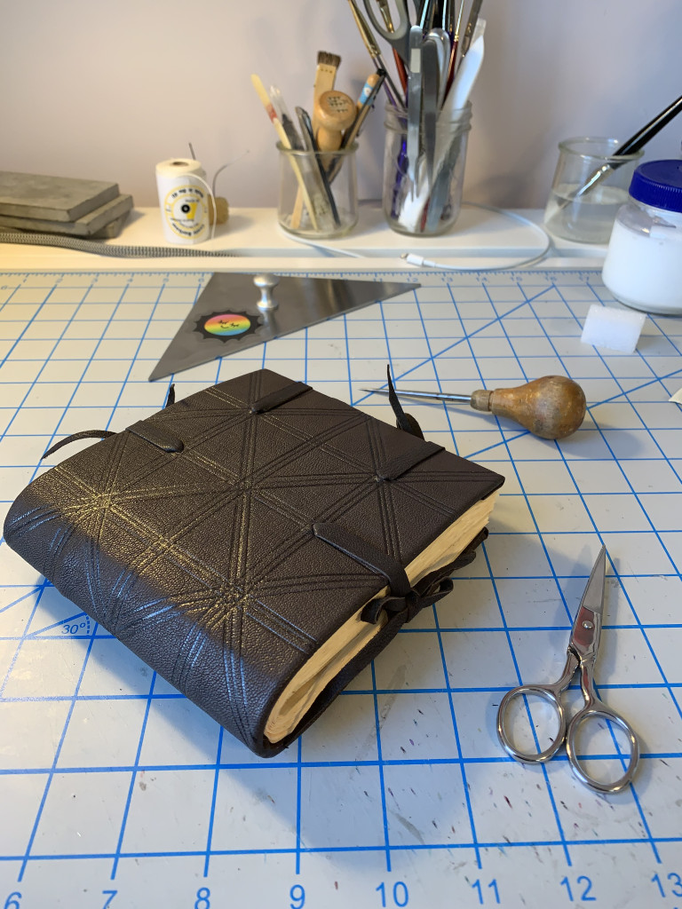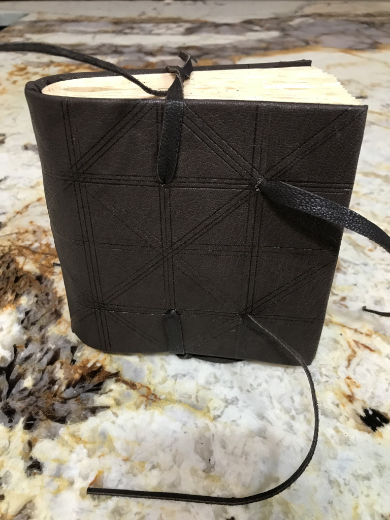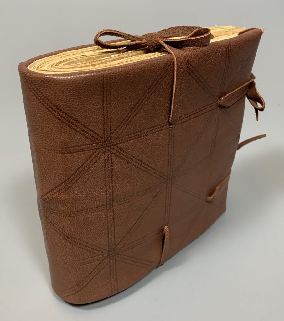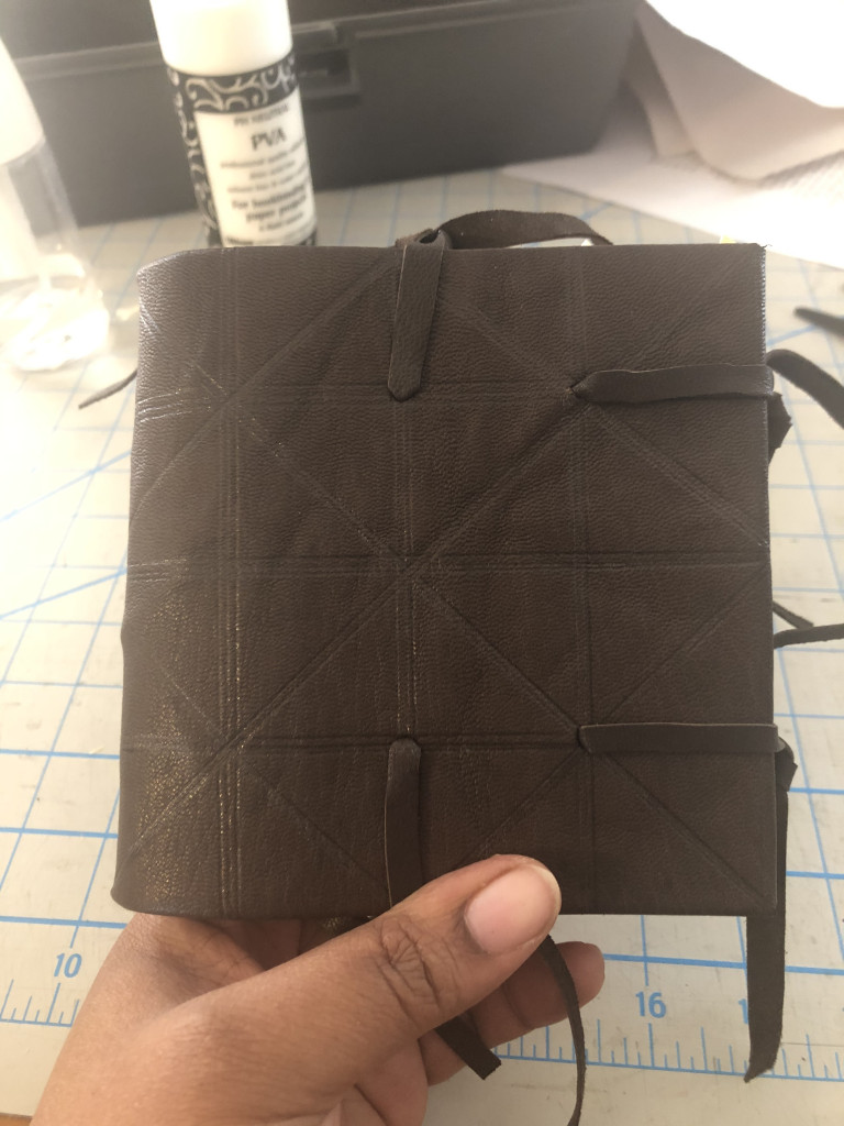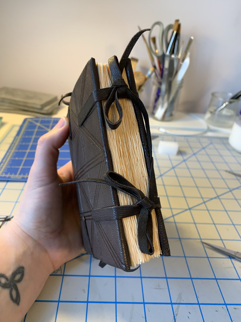 Kasie’s model – like several of us, Kasie created a cutaway model, not fully pasting down one side of the leather and turn-ins and not attaching the pastedown