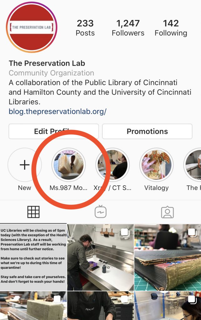 Make sure to check out our Instagram (@thepreservationlab) where we’ll share Catarina’s process of making her Codex X model later today. And, if you missed yesterday’s Instagram stories where Jessica shared the exciting journey of photography the choir psalter then take a look at our “PresWeek 2020” story highlight (see below).